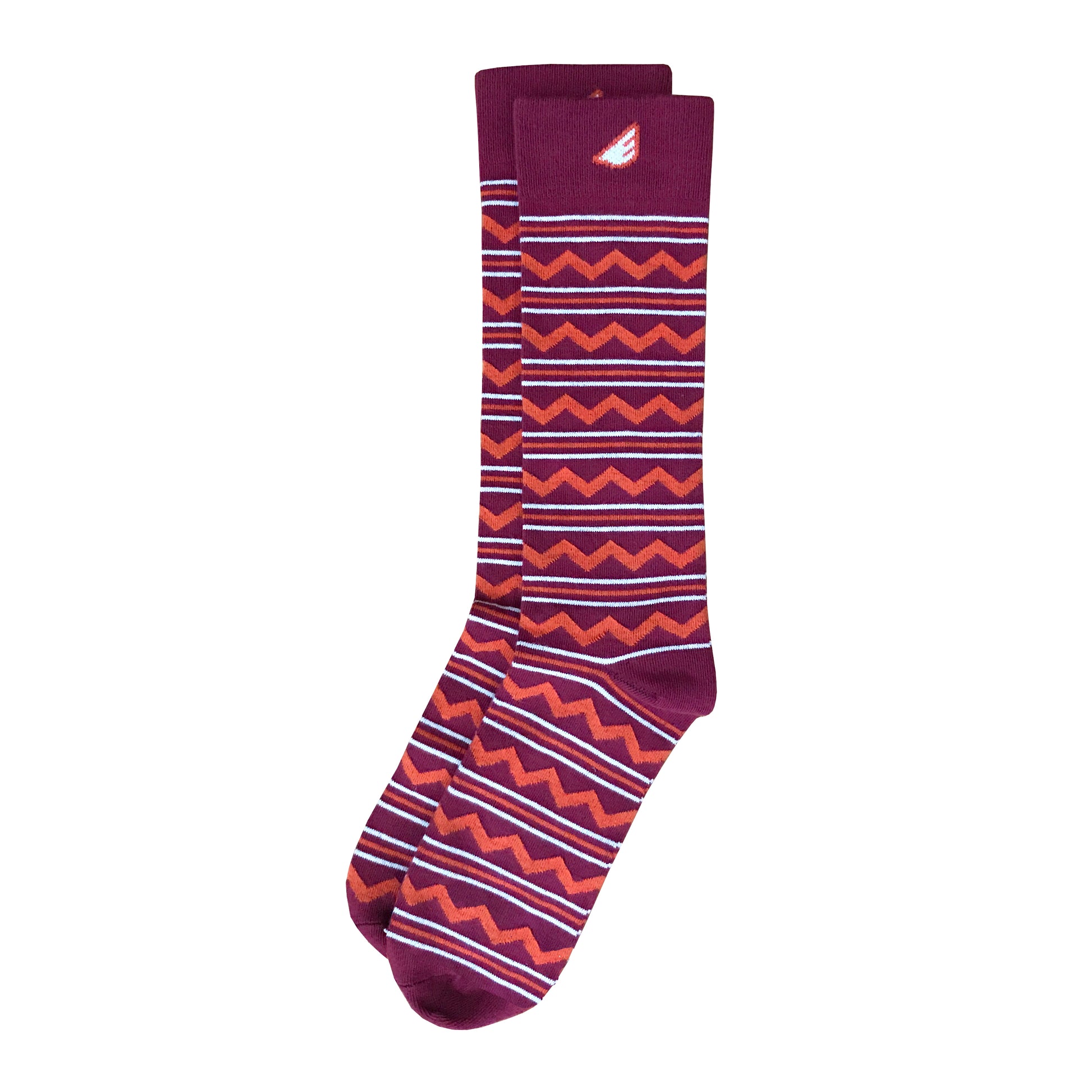 Cliffhanger - Maroon, Orange & White. American Made Dress / Casual Chevron & Stripes Socks