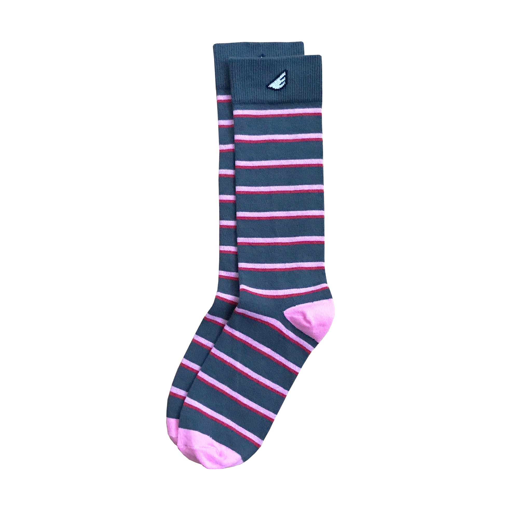 Gambler - Dark Grey, Pink & Red. American Made Dress / Casual Stripe Socks