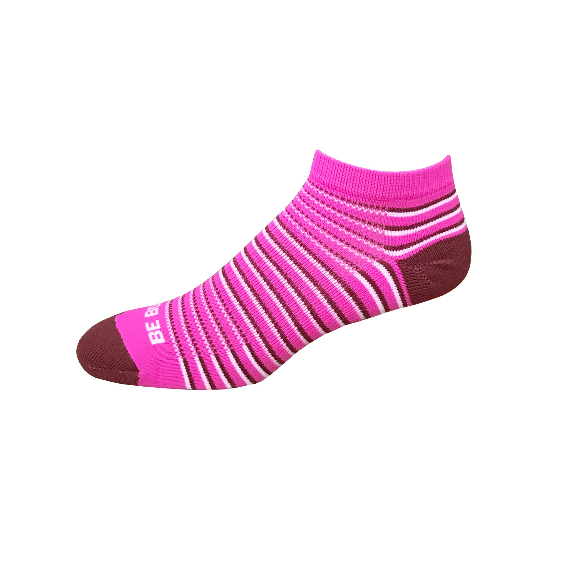Racer - Hot Pink, Maroon & White. American Made Stripe Ankle Athletic Socks