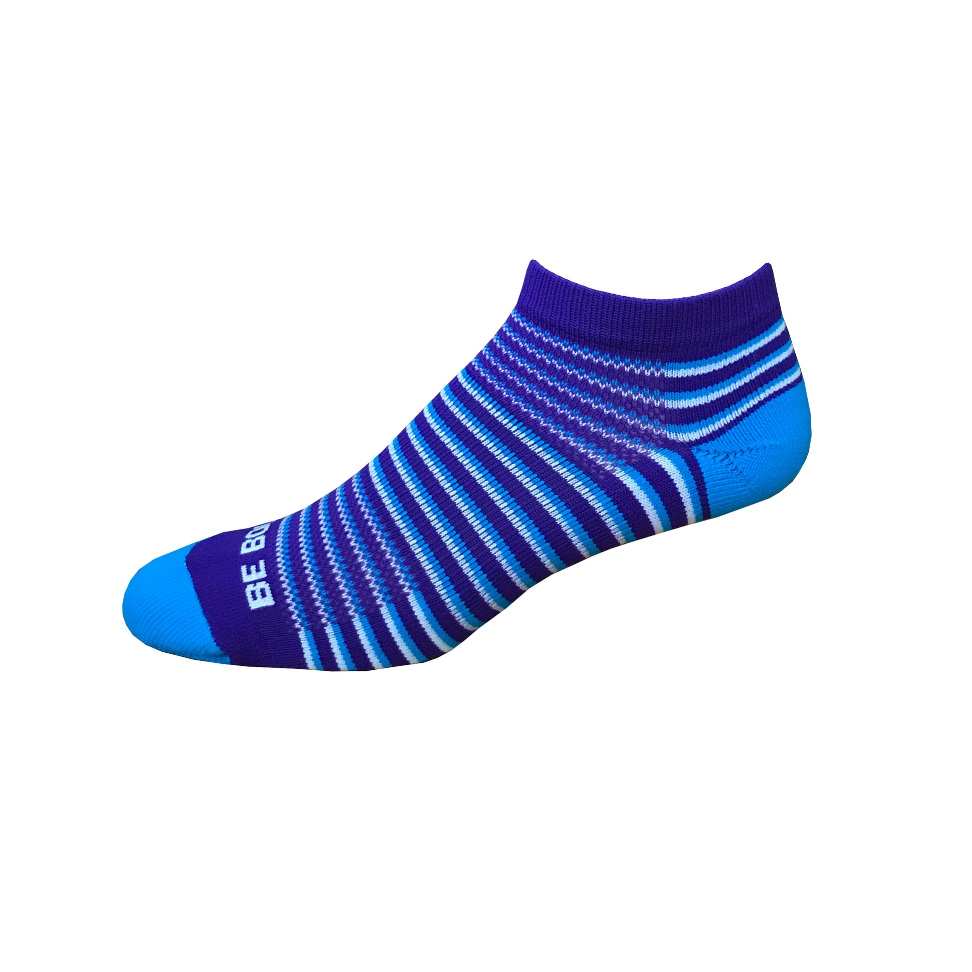 Racer - Purple, Electric Blue & White. American Made Stripe Ankle Athletic Socks